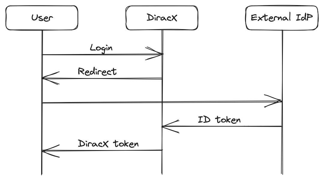 - Token Exchange Grant: Enables trusted externally issued tokens to be exchanged for DiracX credentials.
